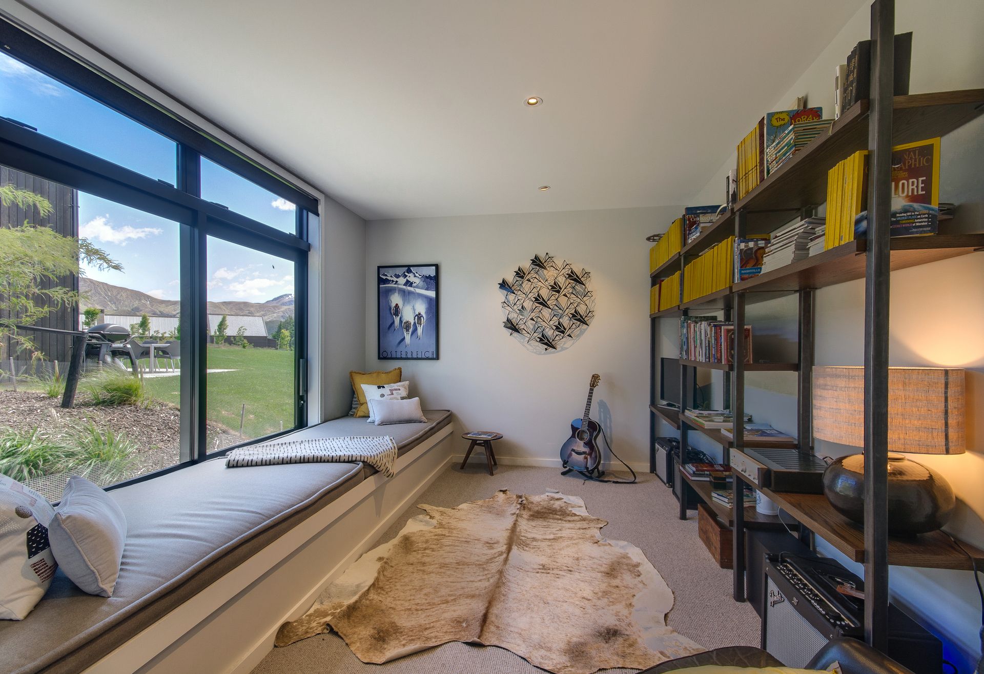 Its modern interior is beautifully done and offers stylish but easy living. It has a great kitchen for those wanting to relax and cook whilst they are here, a beautiful dining and living area and a separate TV room/den for those wanting peace and quiet. The floor-to-ceiling glass doors slide back to offer fabulous indoor/outdoor living flow, making the most of the private and peaceful rural location and mountain views.