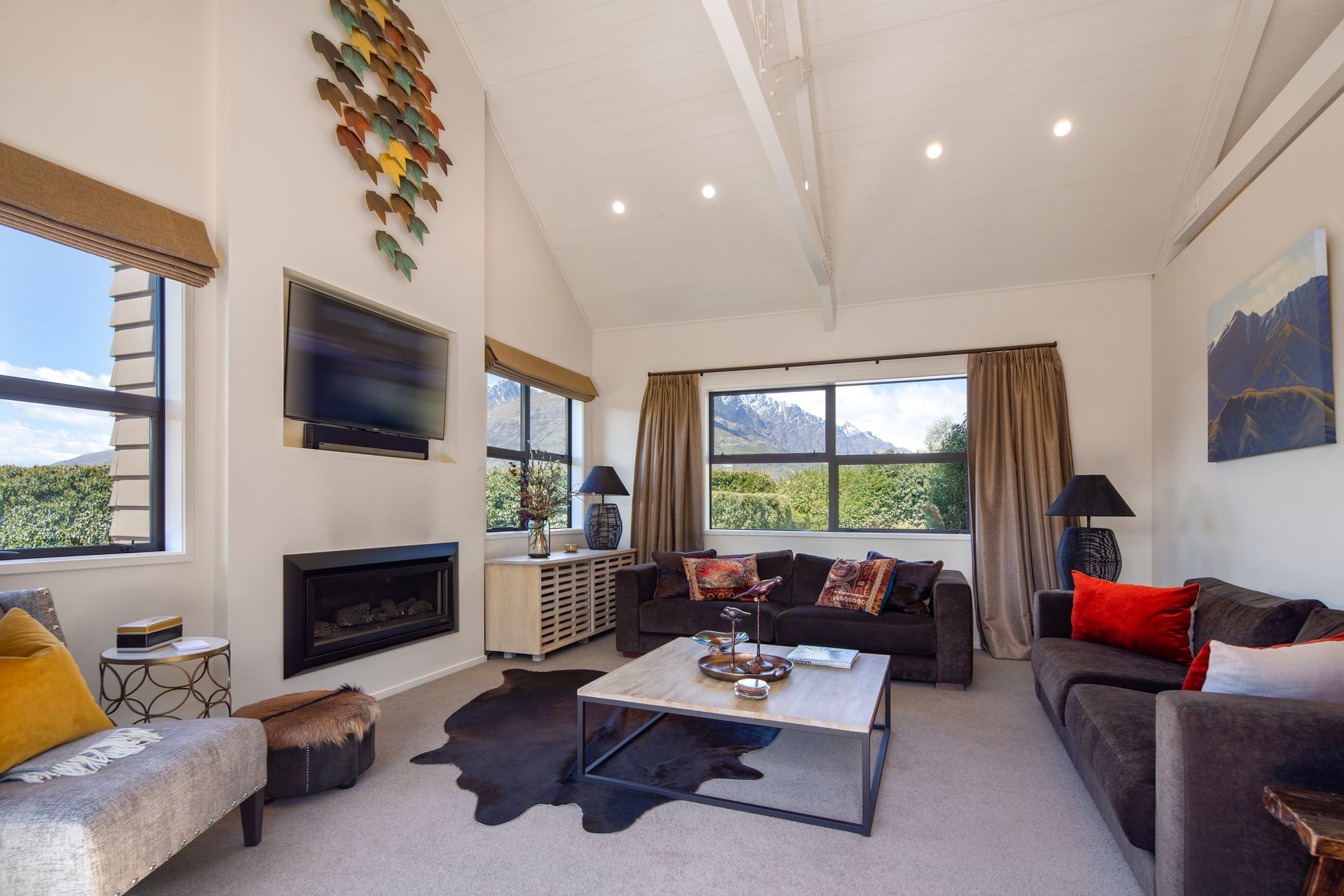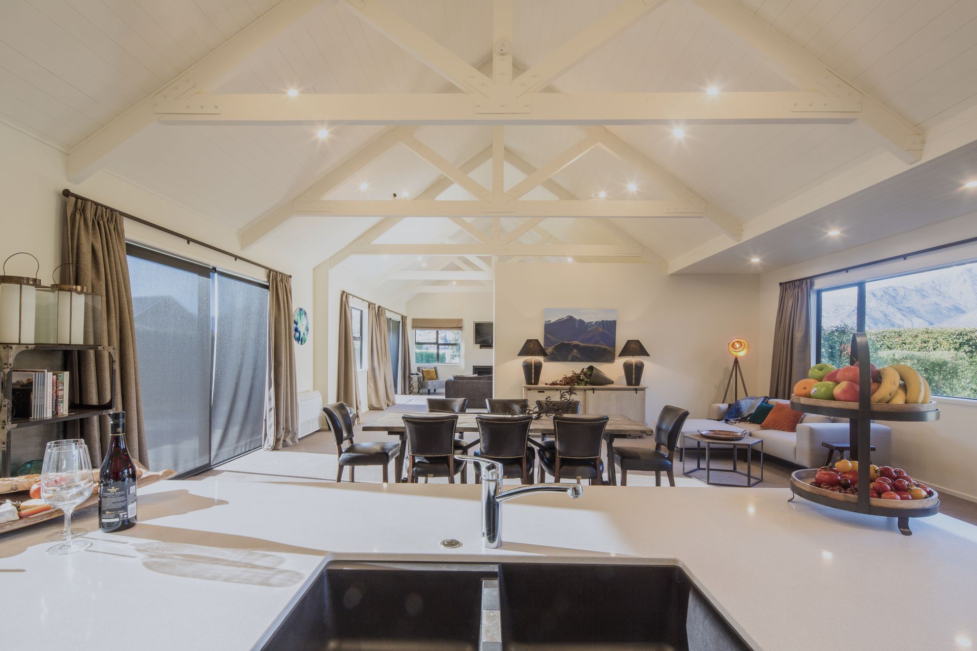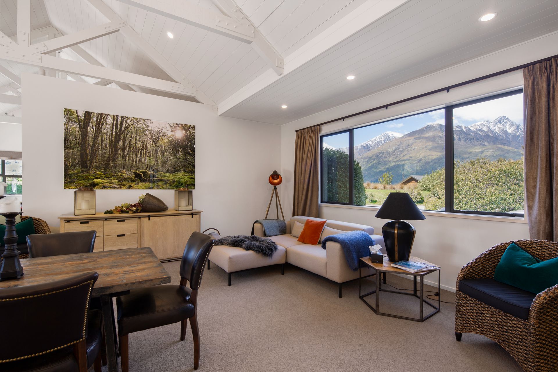 Three Peaks is the perfect private and peaceful holiday home for 8 with a hot tub for a Queenstown holiday, providing a modern and stylish space and a fantastic location – the absolute epitome of stylish easy living.