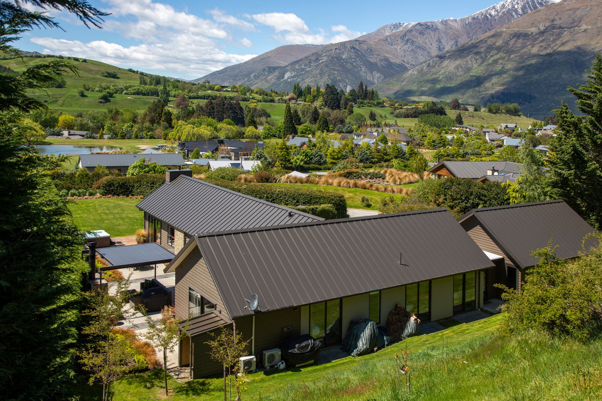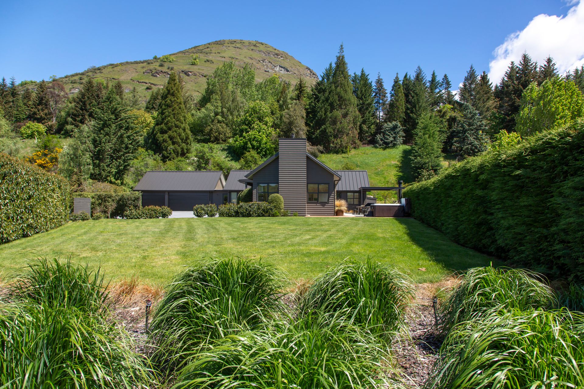 Situated in a beautiful semi-rural setting this stylish holiday home for 8 with a hot tub is close to both Queenstown and Arrowtown and offers stunning views of the iconic Queenstown Mountains: Coronet Peak, the Remarkables and Crown Peak – a dream view for those in Queenstown for a ski holiday! Should you be staying in summer though, you’ll be very close to walking and cycle trails, Central Otago wineries and golf courses, not to mention all the activities accessible from Queenstown and Arrowtown. Queenstown’s newest hub of shops, cafes and restaurants (Queenstown Central & Five Mile) is just 5 minutes drive away.