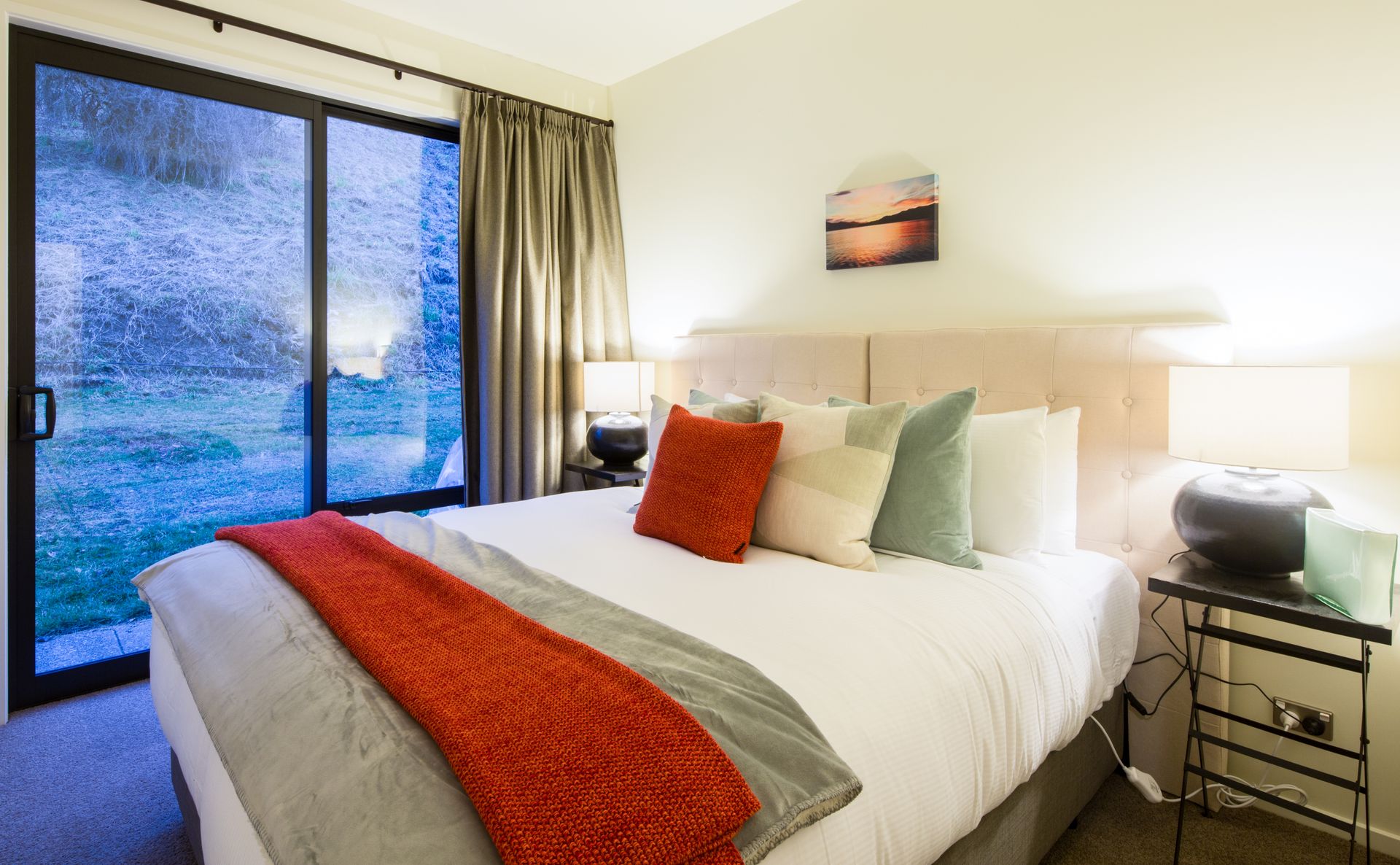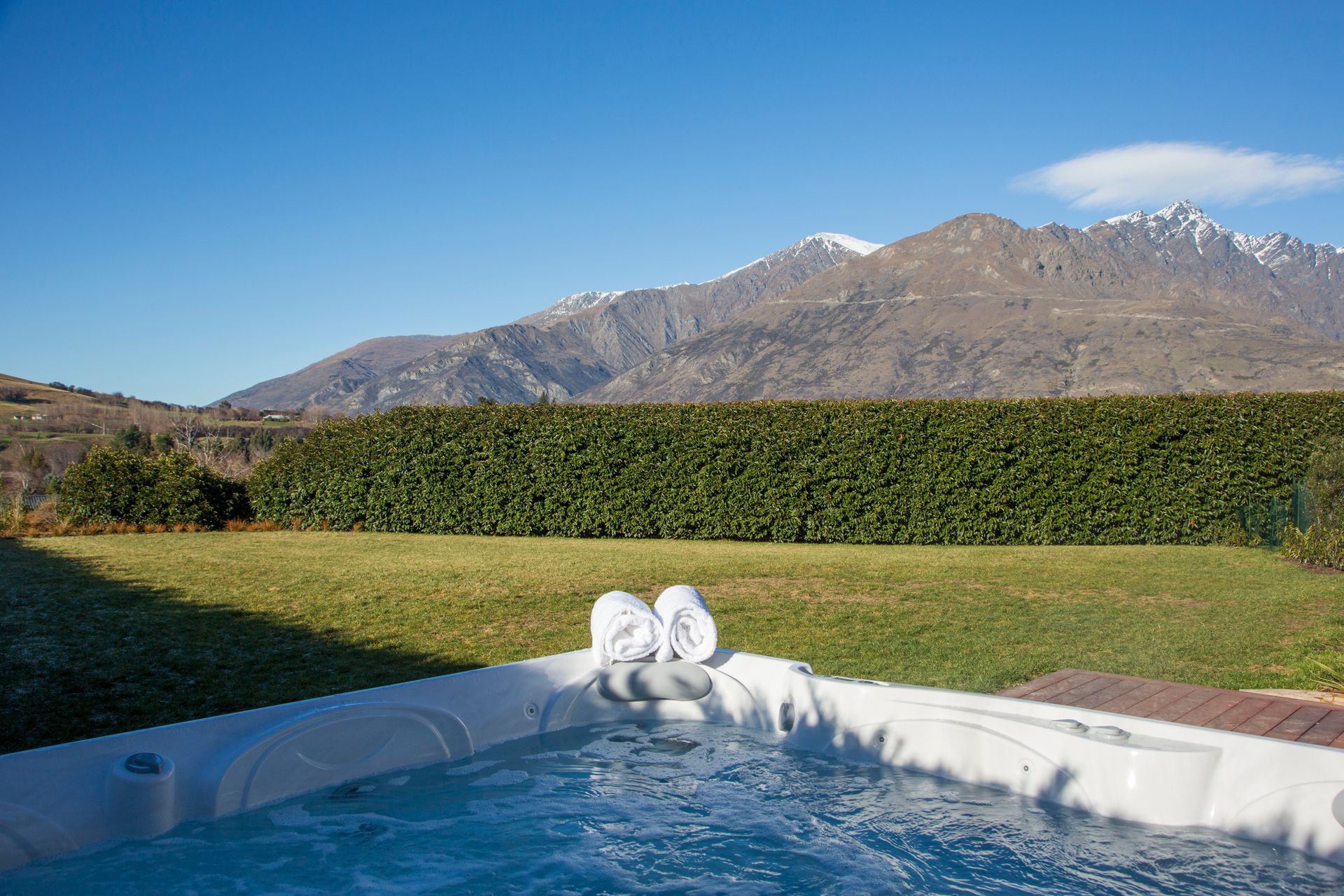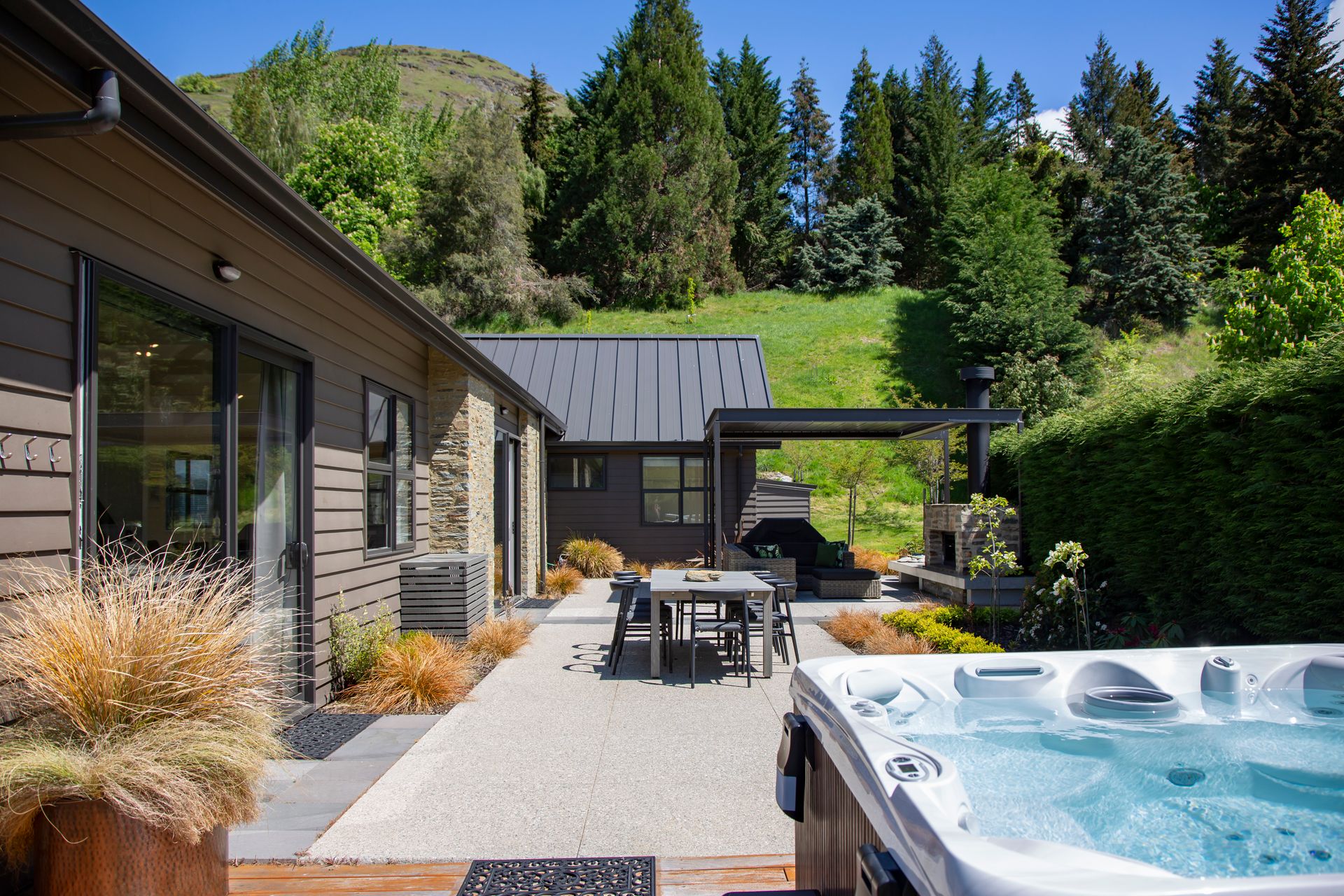 Snuggle up next to the gorgeous outdoor open fireplace or soak in the private spa pool after a day of activity and watch as the sunset lights up The Remarkables mountain range.