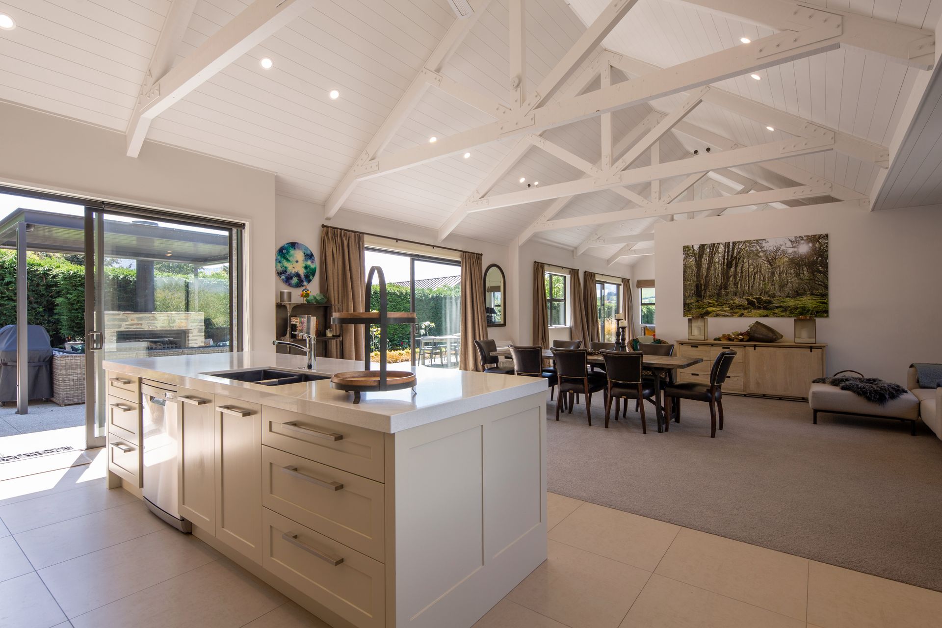 For our foodie friends; the kitchen, which opens up to the dining and living area, is a great space for entertaining and offers everything you will need during your stay. For those who want a truly relaxing break, previous guests in this home have enjoyed allowing us to arrange a personal chef for the evening, with the open plan design allowing you to interact with the chef as they cook up a storm.